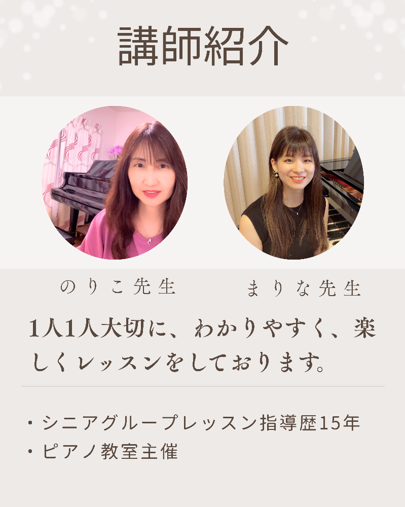 | 講座名 | 50歳からの趣味ピアノ |
